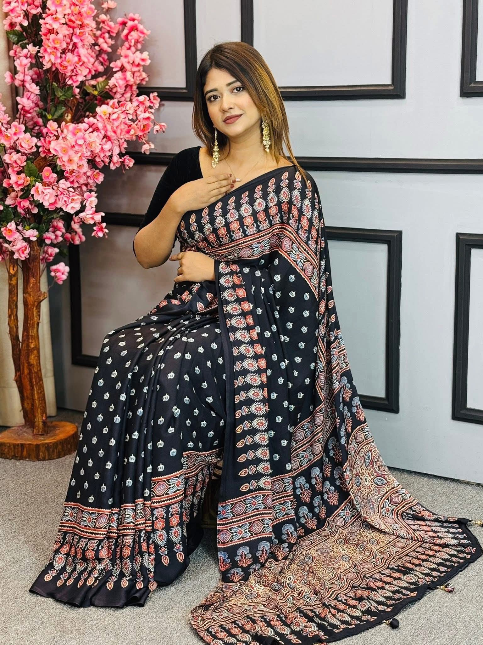 Pure Indian Ajrak Modal Silk Saree - 1057