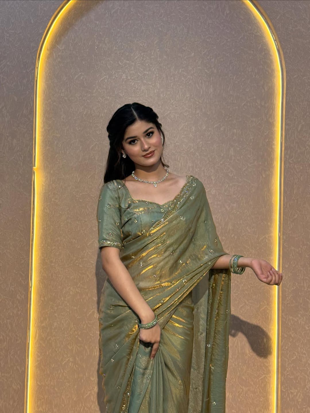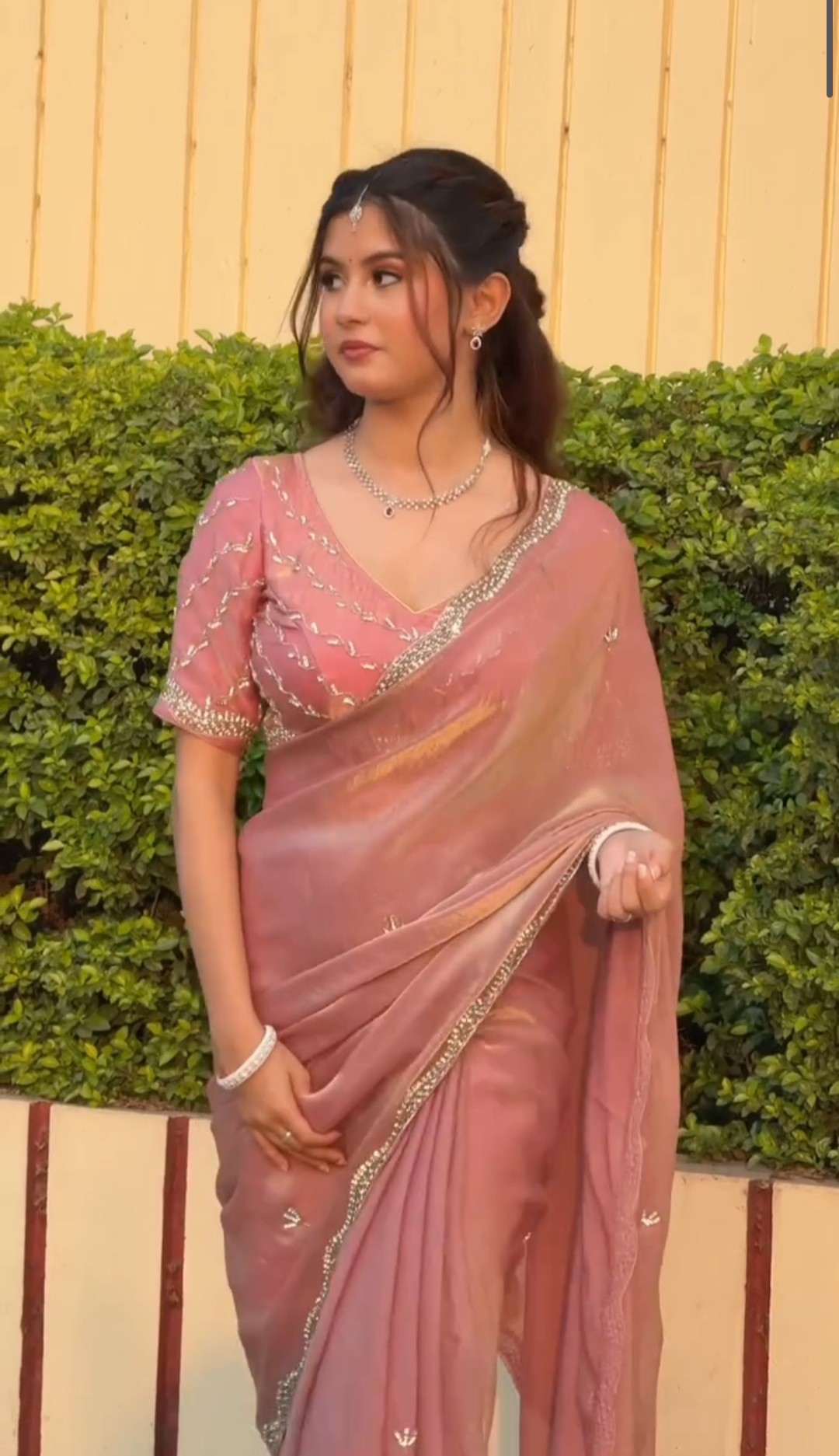 - Blouse: With unstitched blouse piece