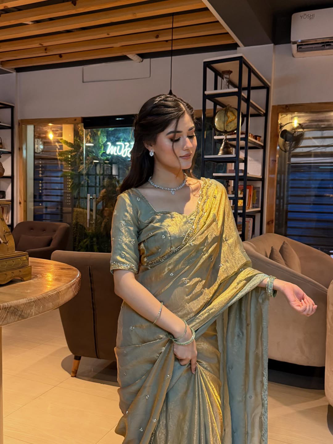 Swopnotori – স্বপ্নতরী Gorgeous Afgani Silk Saree (Jharkan Stone Work)