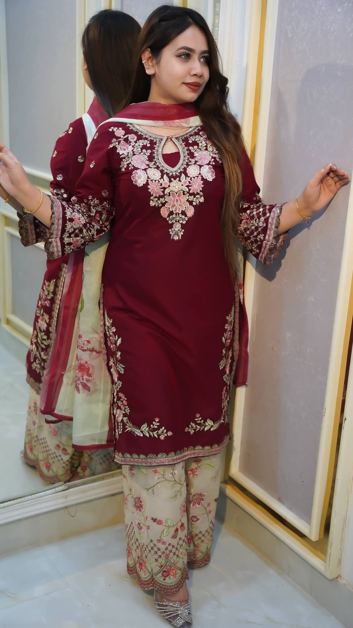 ✔️ Matching embroidered pajama & orna